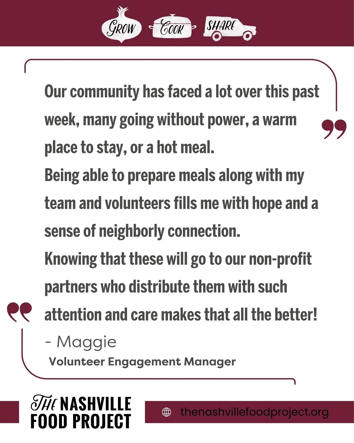 In our community, we share nourishing meals in partnership with local poverty-disrupting nonprofits and community groups.