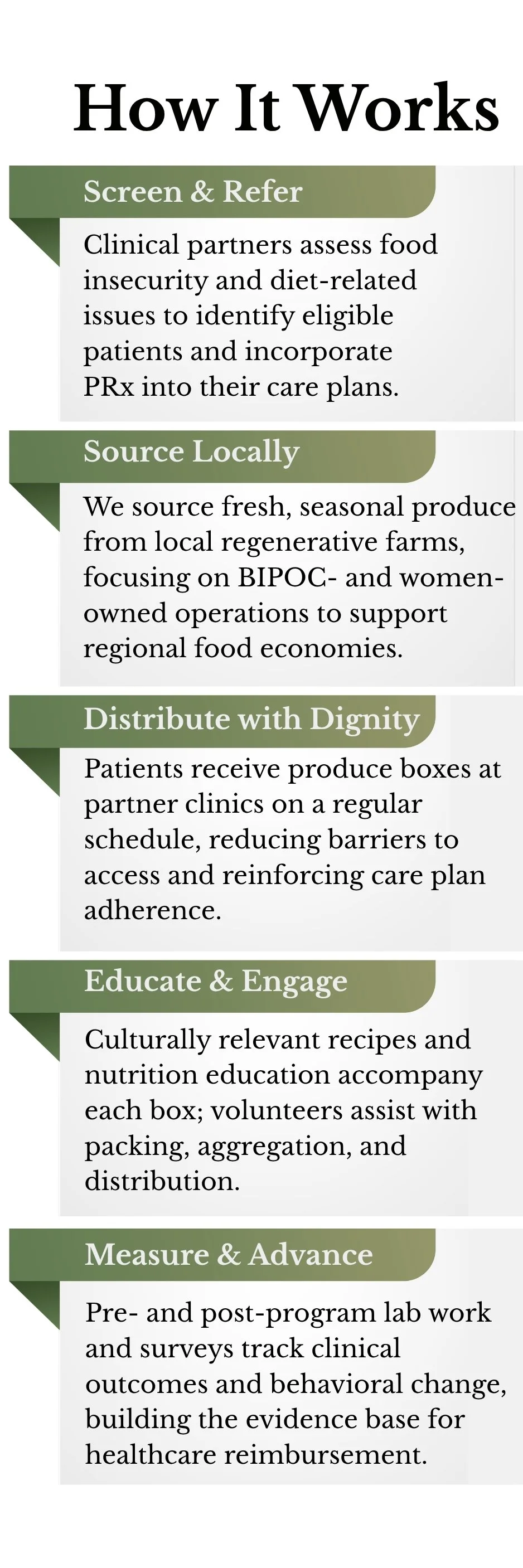 If we coordinate the sourcing, aggregation, and distribution of fresh, locally grown produce to patients through trusted clinical partners — and if that produce is paired with nutrition education and embedded in individualized care plans — then patients gain consistent, dignified access to the food they need to manage their conditions.
